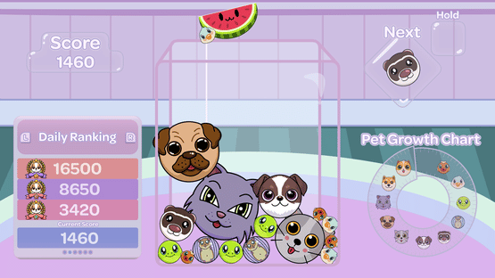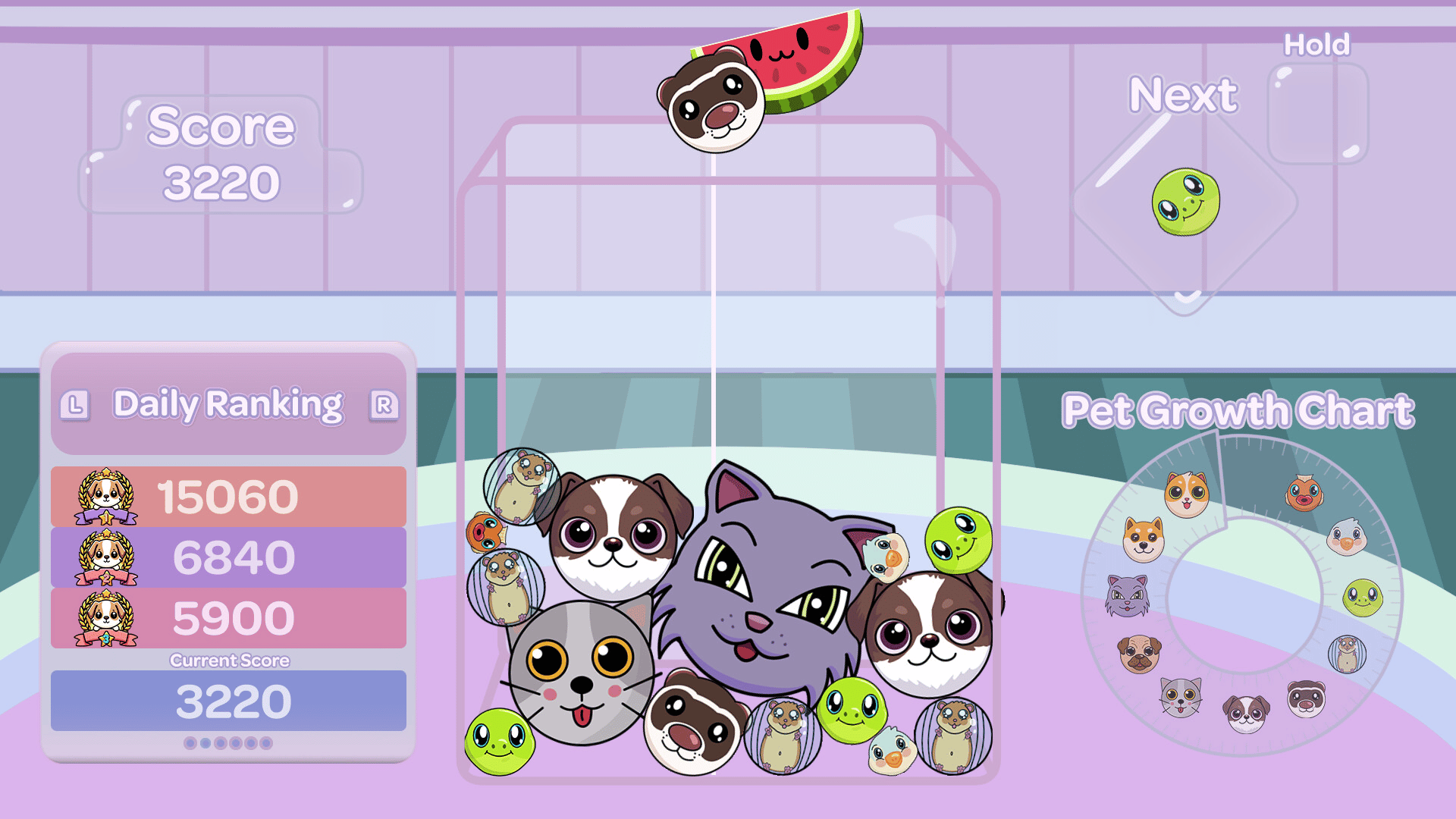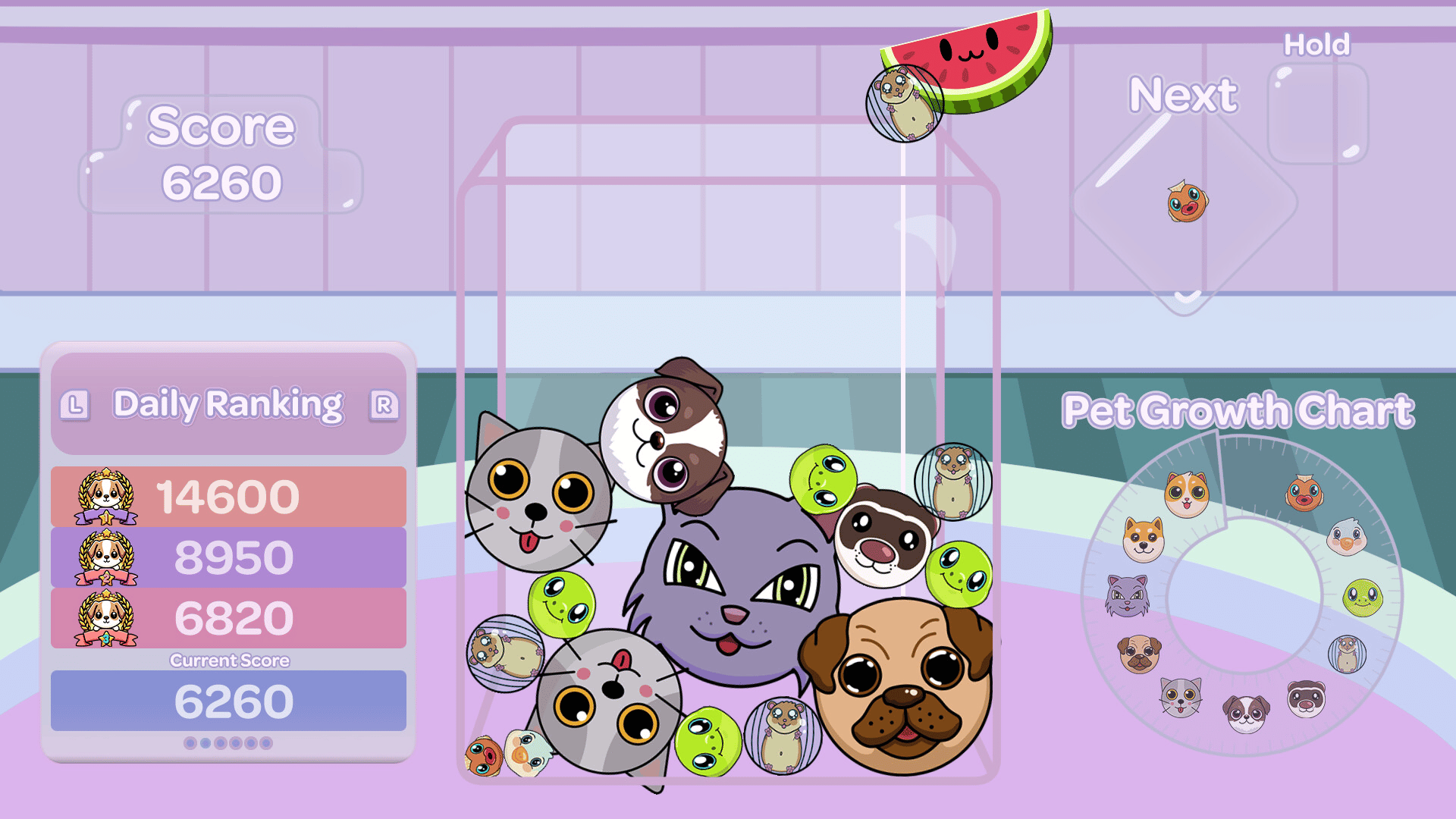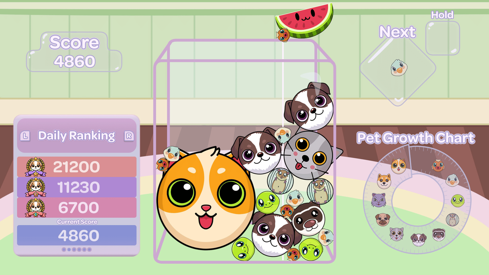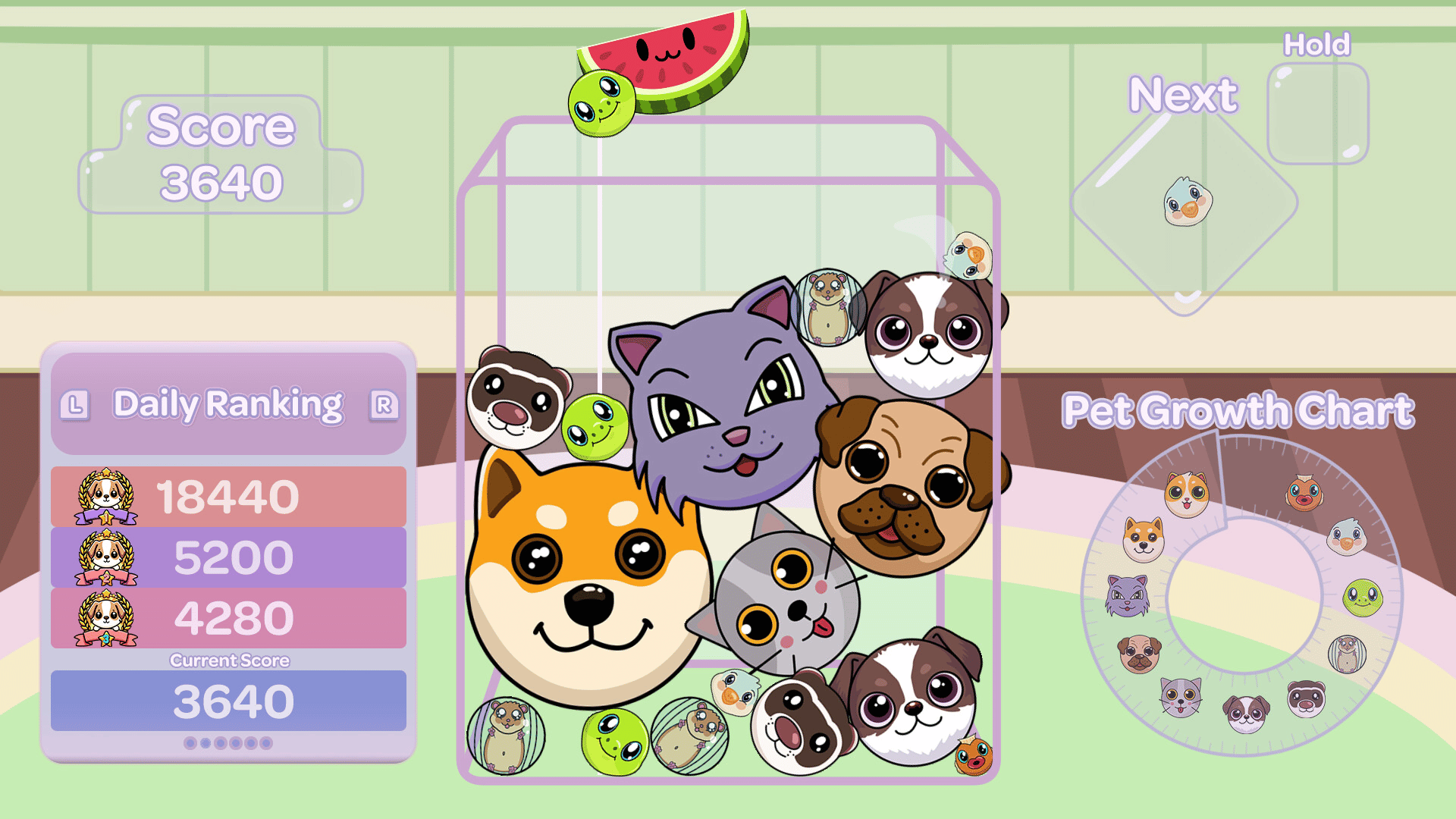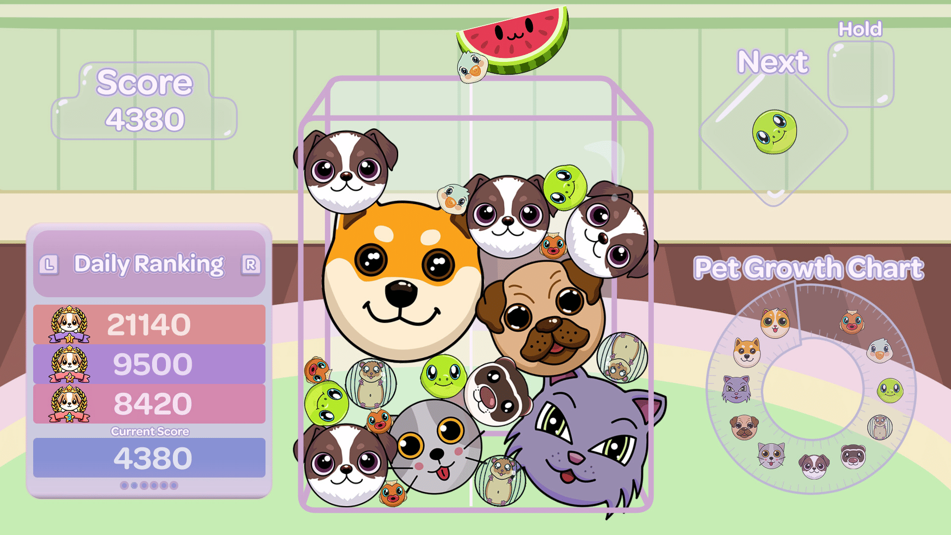 Suika Pets is the adorable puzzle game where you combine your pets to grow your score without overflowing their container!