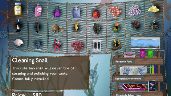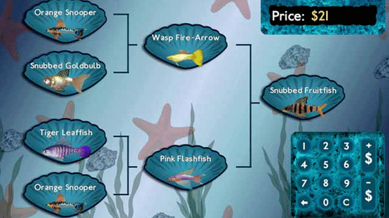 Fish Tycoon is a virtual fish breeding game. The object is to breed and cross breed fish until you find the 7 Magic Fish and solve the genetic puzzle. You will have to buy supplies like meds, eggs and special plants and then sell some of your fish in your virtual pet store. If you have enough money you can buy new supplies and customize your virtual aquarium.