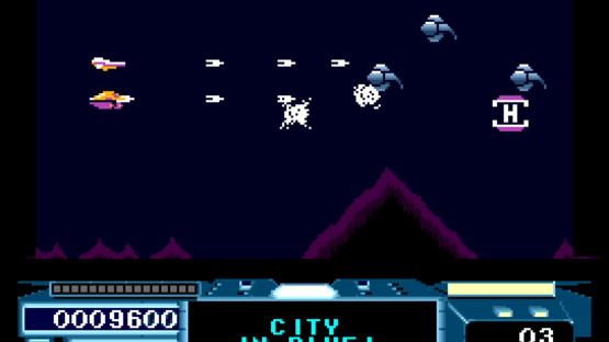 Hydefos is a shoot 'em up with smooth scrolling, a rarity on the MSX, where the scrolling is usually choppy, and a feat developer Hertz had already accomplished on a previous title, action platformer Psychic World. You pilot one of five ships through levels featuring branching paths, so two play-throughs could be different depending on where you go.