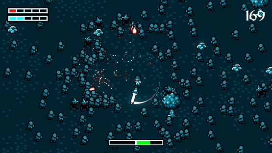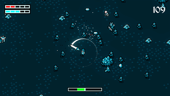 A melee based horde survival game. You are a knight wielding an oversized greatsword. Whirl it around in circles and use your blade's momentum to slash through endless hordes of monsters. But take care! You'll get dizzy from all the spinning!