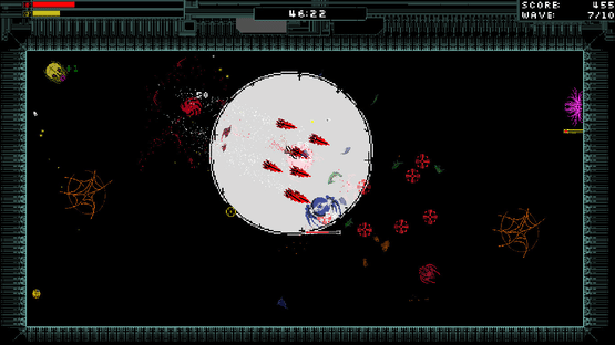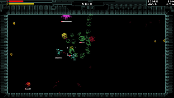 Kickback is a top-down shooter with roguelike elements, where shooting is the only way to move. Repel waves of mutants, create combinations of weapons and upgrades to optimally navigate the enclosed arena and avoid collisions with enemies.