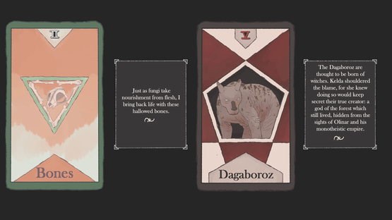 Seeking solace from the hunt of the blasphemed, a witch has made a game of tarot cards. She uses the intentions of her enemies against themselves, redirecting opposing attacks to work in her favor instead.