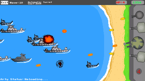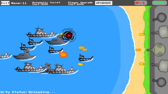 Coastal Defense is a replayable top-down tower defense game inspired by real-world coastal defense structures. Buy and upgrade your coastal defenses to defeat incoming navies!