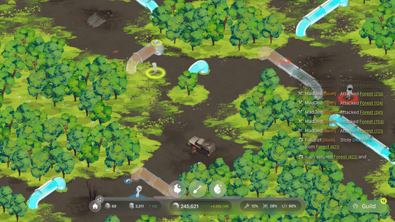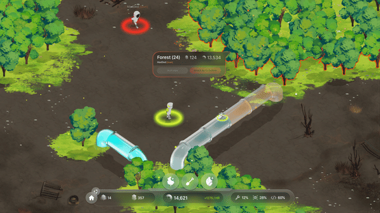 We must revive this post-industrial world. Plant trees to earn Karma, build pipes, join Guilds, and participate in league tournaments to stay alive. Find lost objects to craft secret messages. Go rogue, wander with your dog, steal other players' Karma and grow stronger with every battle