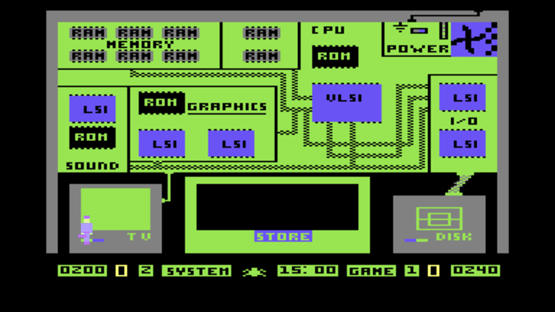 In D-bug, players step into the role of Charlie Fix-it, a computer repair specialist who lives inside a computer system. The game combines two distinct gameplay elements: a strategic board game called Gotcha! where players compete against the computer to capture their own pieces (butterflies or sailboats), and a computer repair simulation that triggers when system errors occur. During repair sequences, players must diagnose problems by observing symptoms, navigate through computer components, and replace malfunctioning parts. As repairs are completed successfully, the game progressively introduces more complex technical challenges, teaching children basic computer troubleshooting concepts through hands-on gameplay.