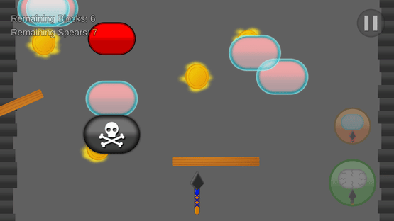 Control the spear and throw it, break all the blocks in the level to win, score points, complete the level, earn coins and go to the next level.