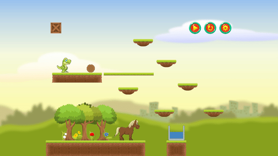Drag objects (wooden boxes and triangles and other objects) to help the little dino throw the wooden ball into the water. And remember that dino can help you with tips, skips and dino points. 100 levels.