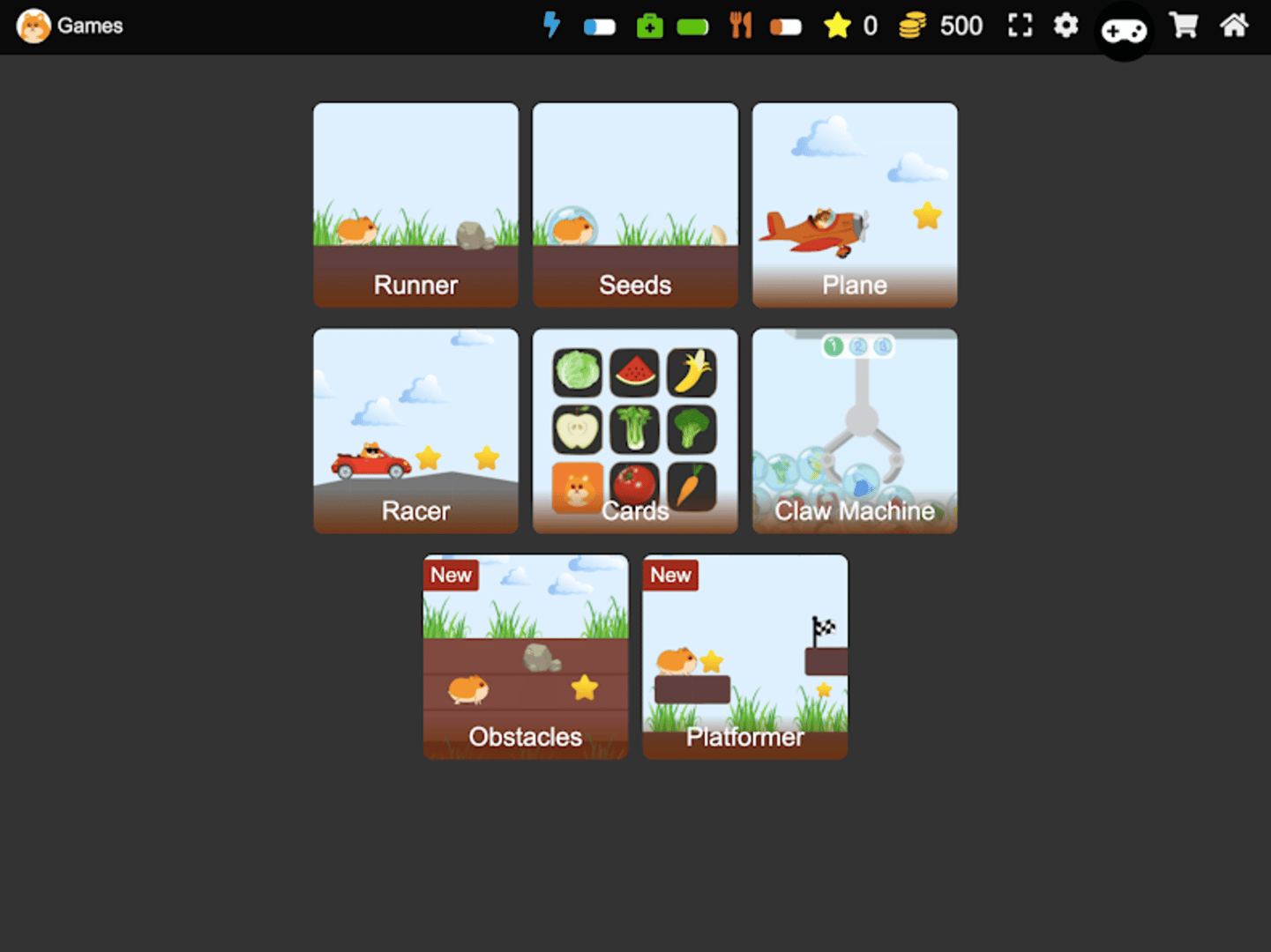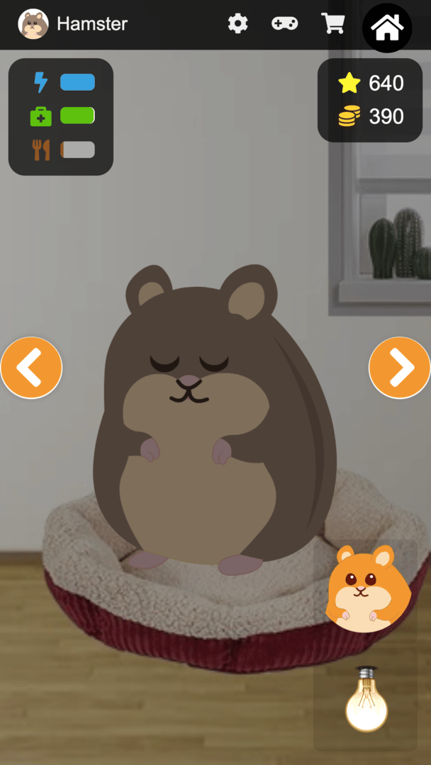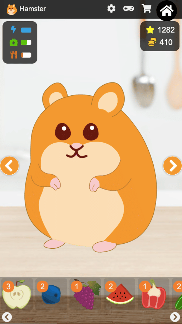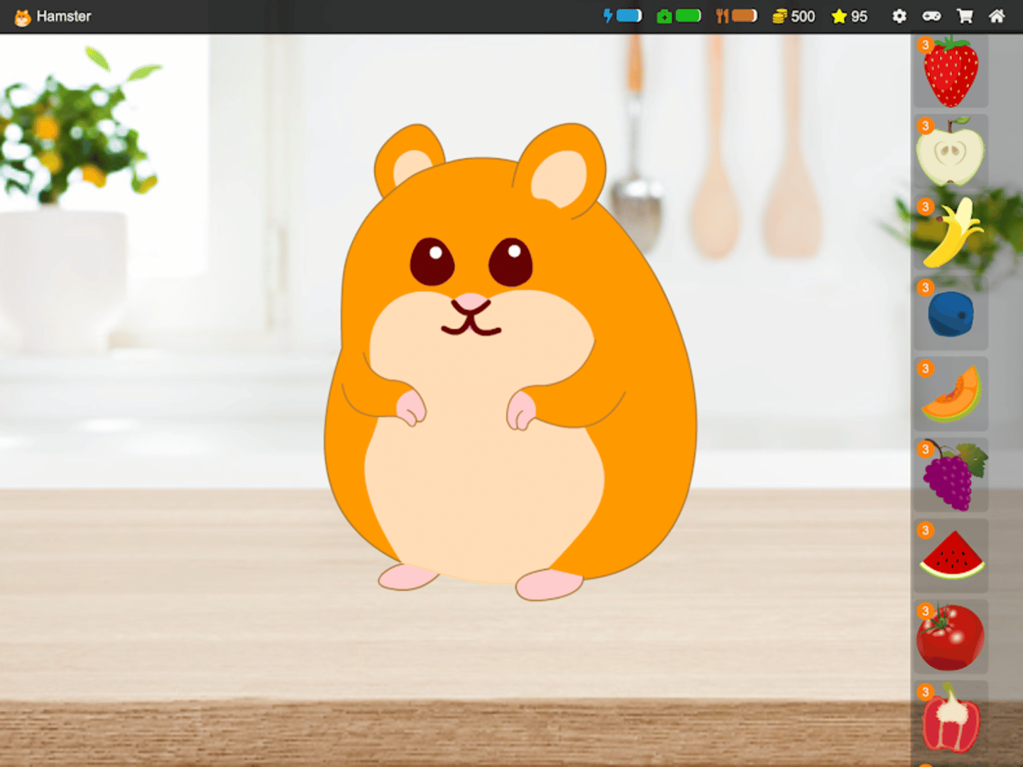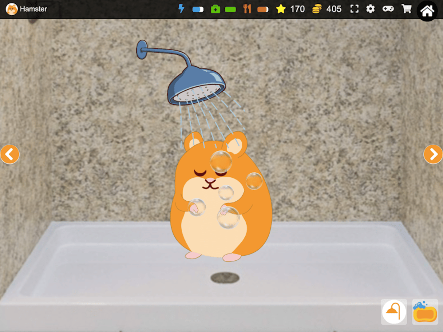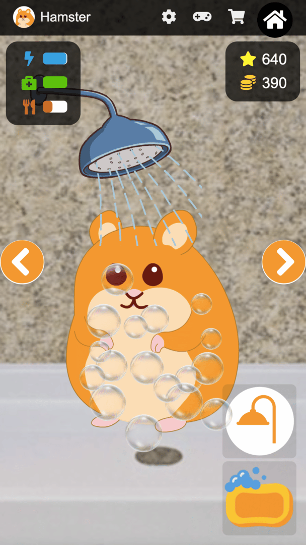 Now you can have your own virtual Hamster pet! Select one of three hamsters available: Peepoom, Chokin or Chini. Enjoy delightful moments spent with your hamster — watching it, treating it to delicious snacks, allowing it to take a cozy nap, or enjoying a refreshing cleaning bath to ensure your furry virtual friend stays vibrant, healthy, and full of energy. Have fun playing different Hamster games with your new friend!