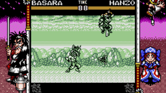The Game Boy version of Samurai Showdown III lacks Kyoshiro Senryo and Gaira Caffeine, but adds Jubei Yagyu back to the roster as a hidden final boss exclusively for the said version. There are also exclusive features that come from using the Super Game Boy.