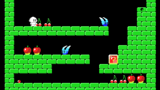 You control the main character who has to take the red ball. When you insert the red ball into the hole in the wall, an exit appears. Once the hero enters there, the level is considered passed. There are a total of 15 levels. The game ends when you complete the last level. To open the chest with a question mark, climb onto the chest and press the down button. There are also secret brick blocks that open in the same way. The hero's lives increase by one for every 20,000 points.
