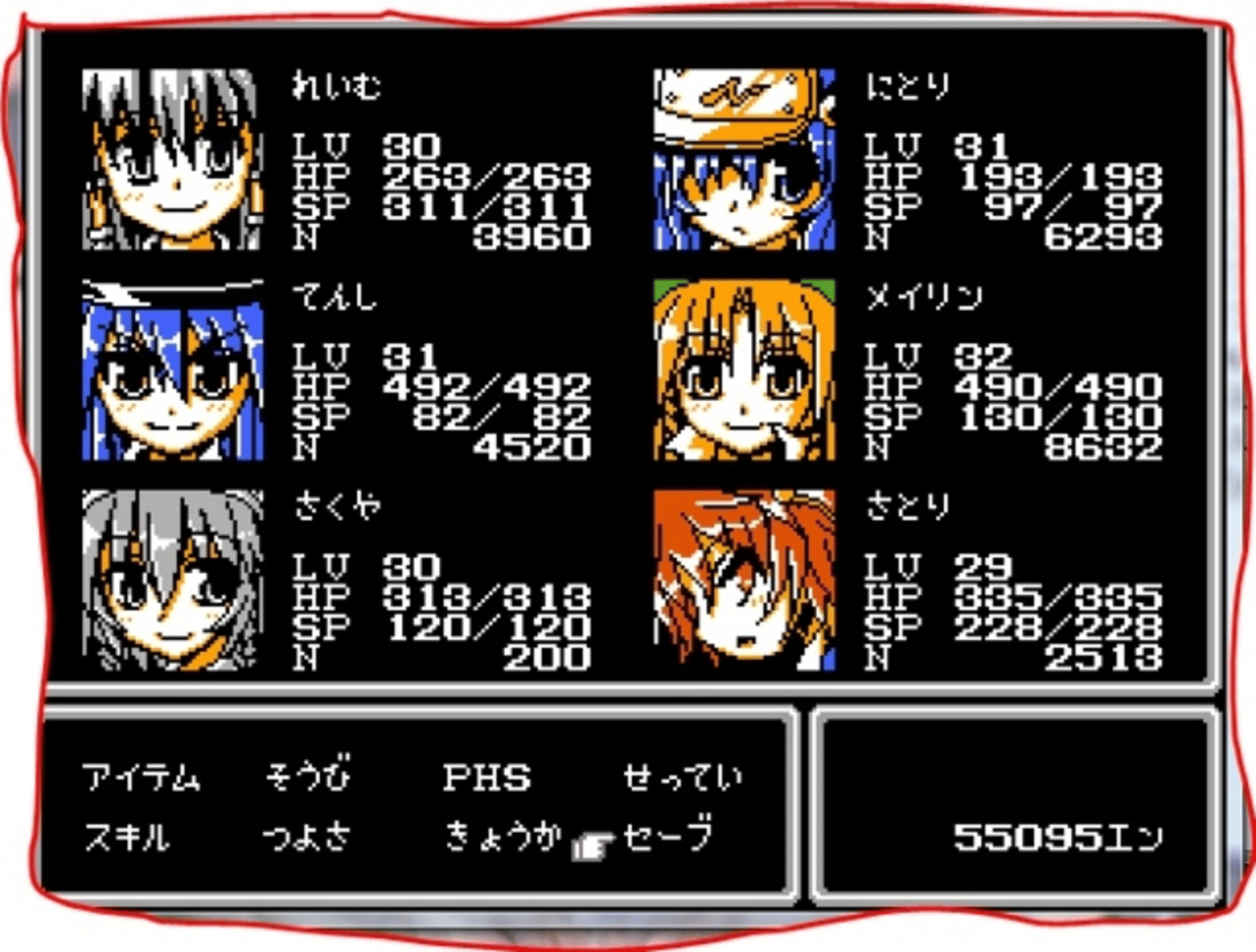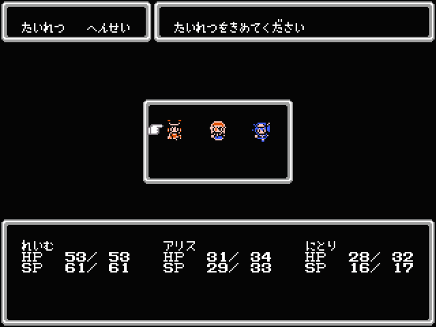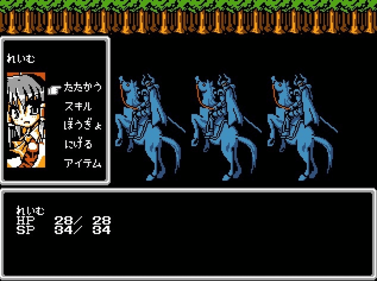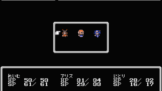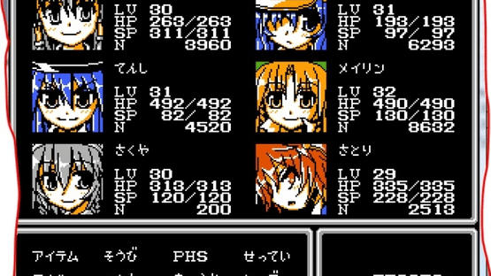 Reimu travels alone at first, but new heroines can be obtained as the player progresses through the game's story by exploring the game world and defeating opponents. The battle system is turn-based with the protagonists and antagonists on different sides of the battlefield, using various commands such as: attack, magic, heal, defend and run.