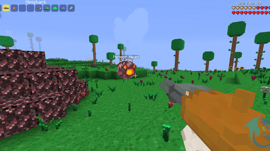 TerrariaCraft is a mod for Minecraft: Java Edition that adds content from Terraria, a 2D game by Re-Logic, by completely changing how newly created worlds look with custom terrain generation, bigger and deeper caves to explore, and many more new features and mechanics than just that! Explore a finite island to find resources and biomes, fight against mobs to survive, and progress through the mod!
