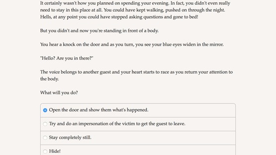 A mysterious tavern with a deadly secret! Check-in to this magical tale of murder and mystery where not everything is as it seems. Explore the tavern in secret or in style, meet and mingle with guests and staff, wield weapons and magic and uncover clues before the killer strikes again!