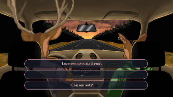 Deer in the Headlights is a game about the strained relationship between a young deer and her dad as they drive to the airport. Navigate through a branched narrative to try and repair their relationship (or not).
