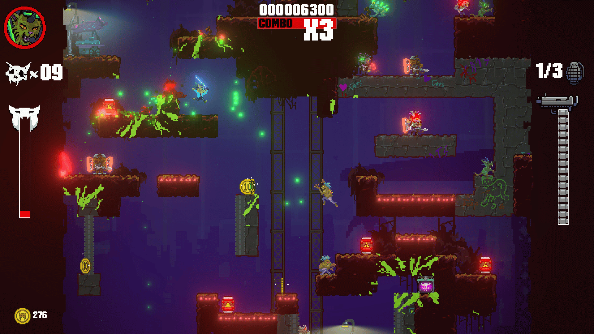 Clawpunk is a challenging, fast-paced, melee 2D action game with roguelite elements and multiple characters, where the player can run rampant in a destructible environment that rewards a reactive and aggressive play style.