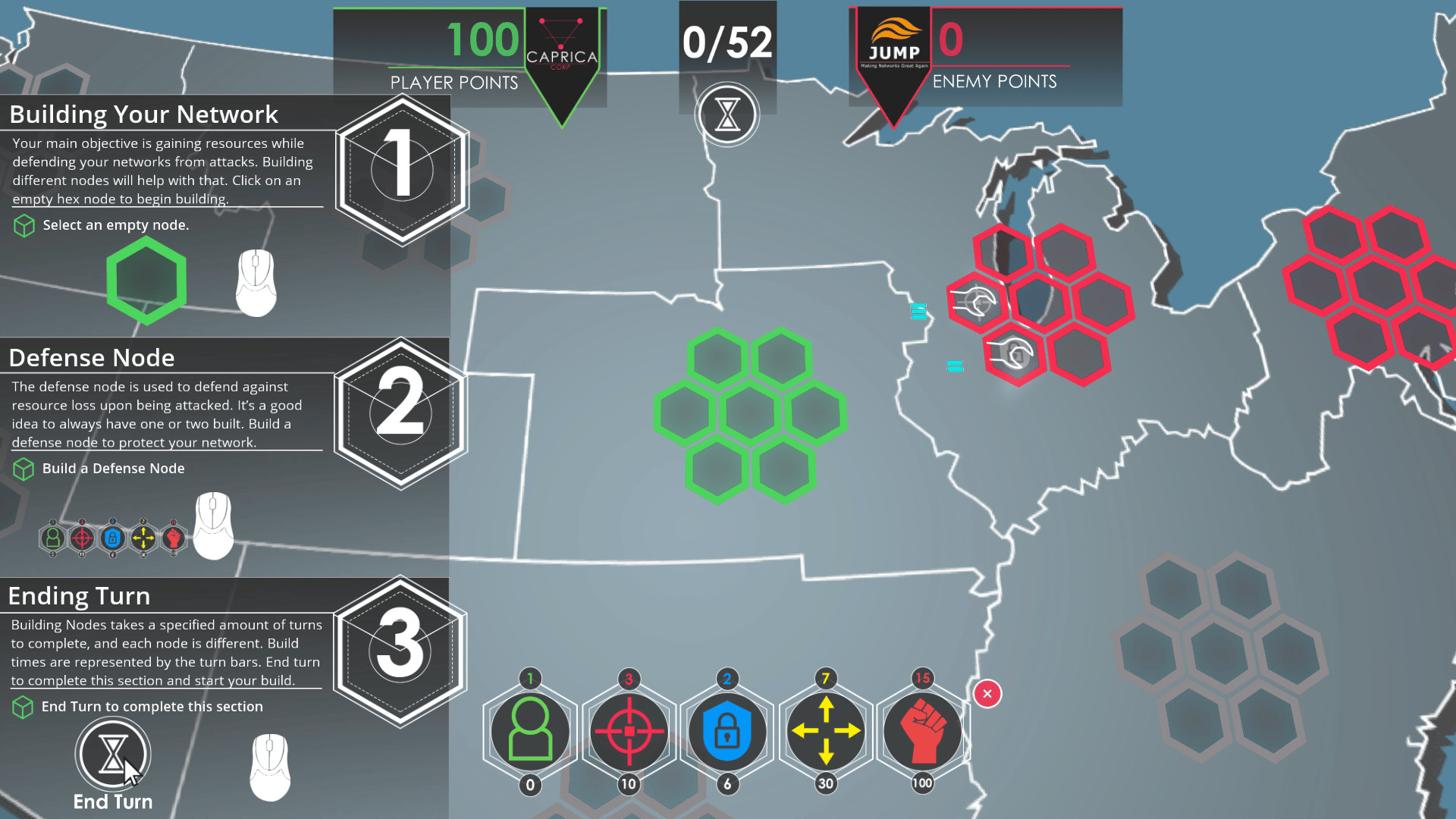 You are a newly appointed defense network engineer in charge of keeping the company of your choosing from harmful outside DDoS attacks. Rival companies want to take your servers offline and its your job to make sure they don't. Expand your network, build defenses, and attack different territory to dominate your opponents.