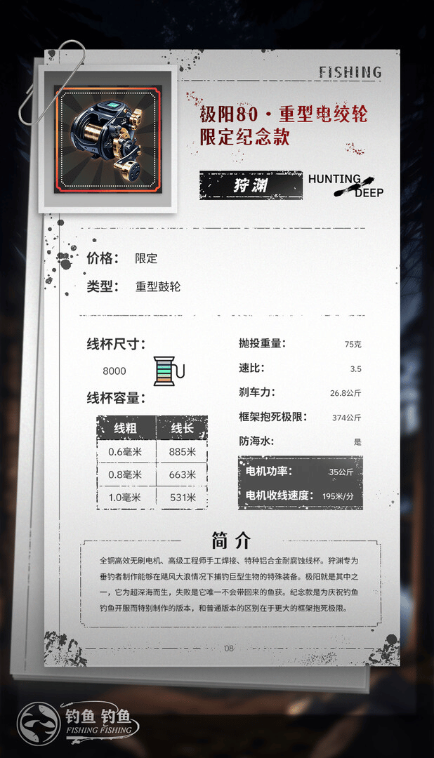 Fishing Fishing is a first person fishing simulation role-playing game where you will travel to multiple provinces in China, experience different scenery and cuisine, and use a variety of fishing gear to fight against big fish.