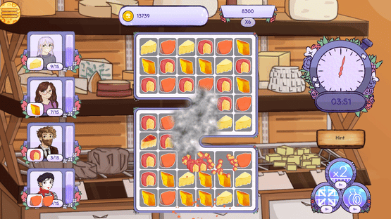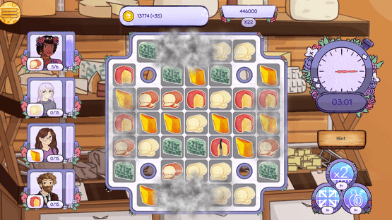 Cheese Party is a casual match 3 game where you match charcuterie board delights to complete party orders with cute artwork. Create cheese knife specials and rainbow cheese if you match more. High point scores are rewarded with power ups to cheese the levels.
