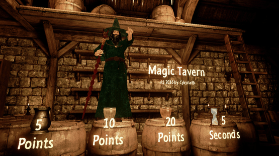 Use your magic spell to destroy the mugs and goblets that materialize in front of you. Hit the hourglasses for some extra time!