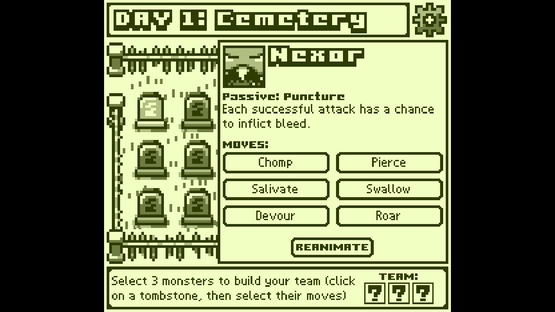 Reanimate monsters, choose their ideal moveset and form the perfect 3-monster-team to dominate the competition in this turn-based strategy roguelike. Use action points each turn on brutal combos and strategic positioning to be crowned champion of the annual Necromancer Tournament!