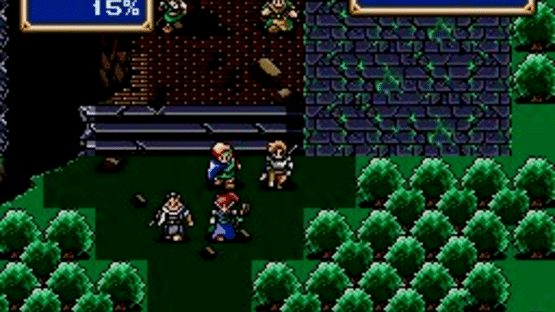Shining Force is a turn-based tactical RPG. Battles take place in square grids, and each unit occupies 1 square. Units can belong to one of two sides: allies (controlled by the player) or enemies (controlled by the computer AI). Each unit can move up to a fixed amount of squares along the battlefield, determined by its Move statistic. Depending on its location relative to enemies and to allies, a unit also has the option to attack, cast a spell, use an item, search (if adjacent to a treasure chest), or stay and do nothing, all of which end the unit's turn. Some commands, such as equipping or dropping items, don't count as actions, and the character's turn is able to continue. The order of the turns is determined by the unit's agility score and a random seed. Units can use offensive actions, such as physical attacks or offensive magic, only on units belonging to the other side and can use supportive actions, such as healing magic, stat-enhancing magic, and items, only on units belonging to the same side.