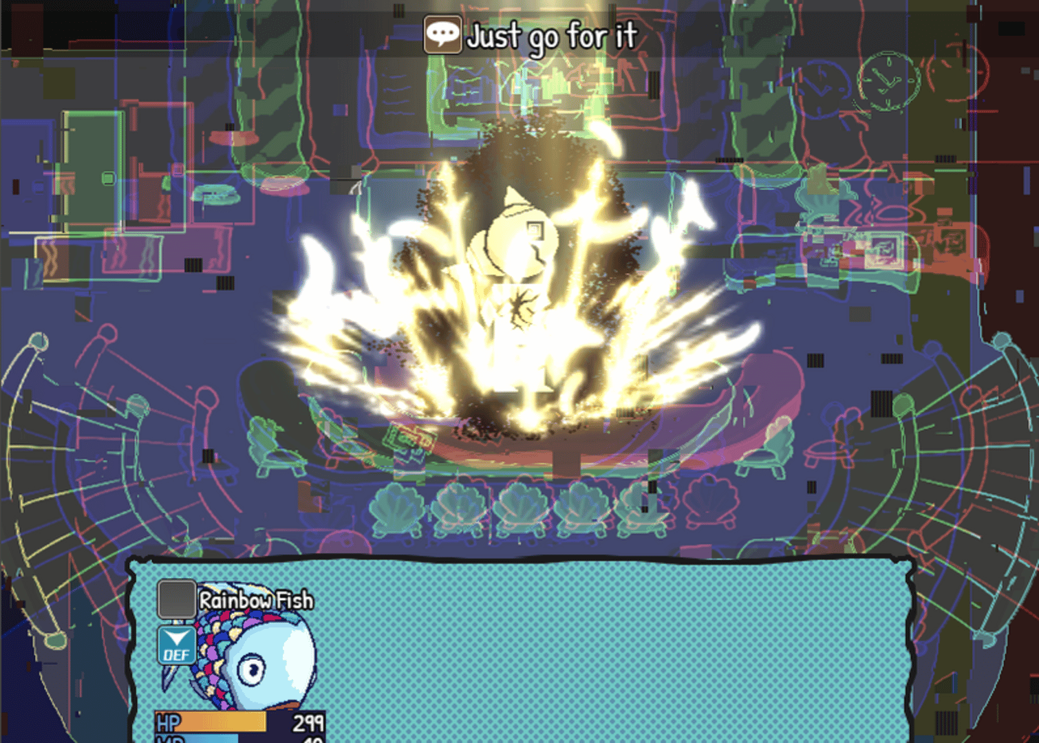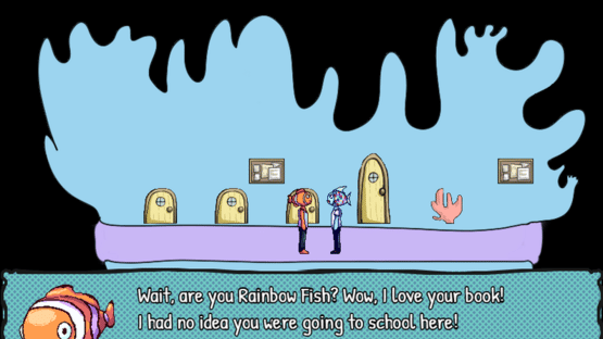The Player plays the titular character: Rainbow Fish! Yes, from the children's book. Except he's all grown up and is ready to take on his first day of school. Help him survive while also peering into the life of a fish who wants to be more than the book he's known for