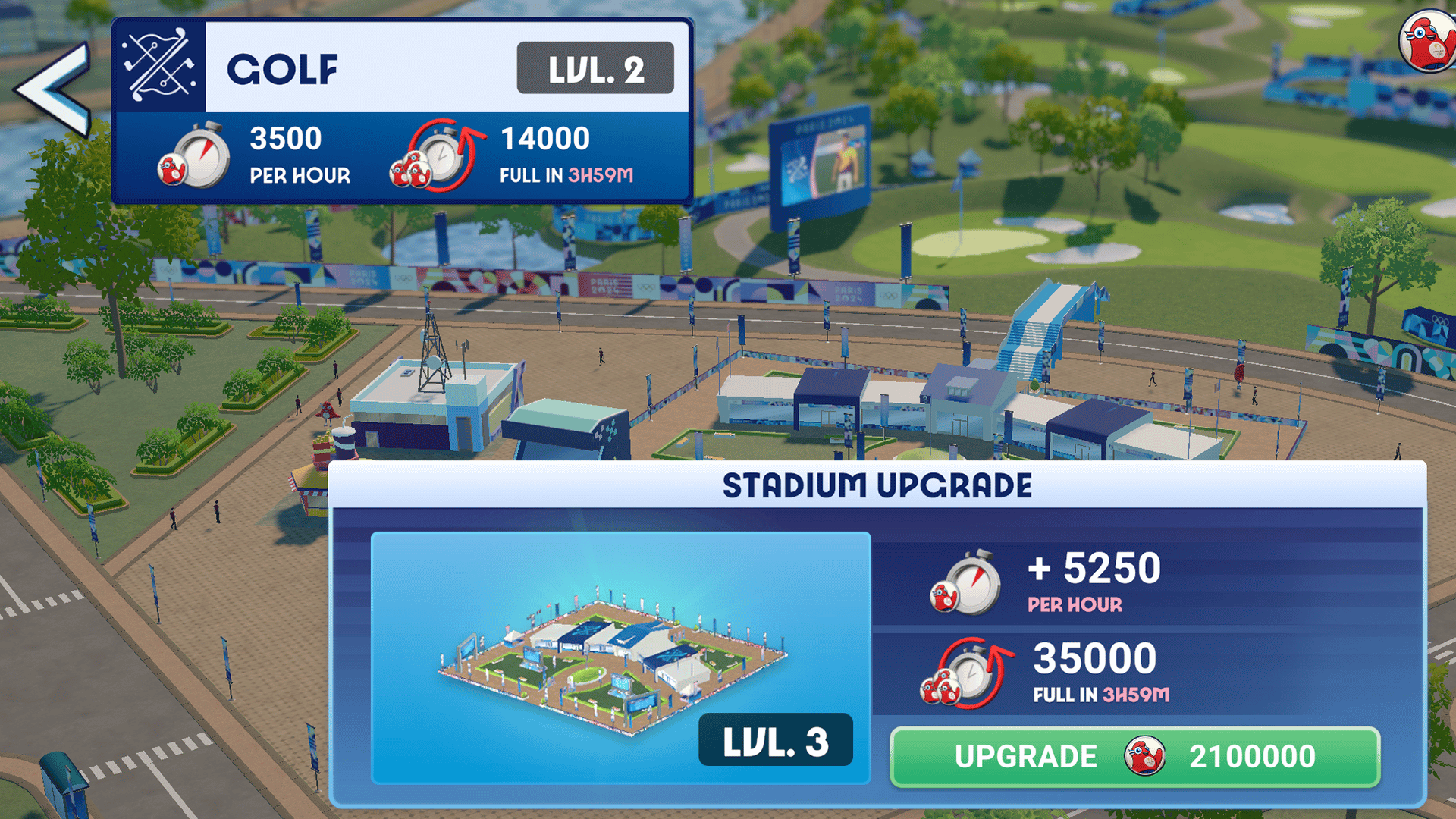 Participate in 12 games and build a city around Olympic venues. Featuring archery, artistic gymnastics, athletics - 100m, basketball, breaking, cycling track, fencing, golf, rowing, shooting - skeet, skateboard - park, and swimming - 100m freestyle.