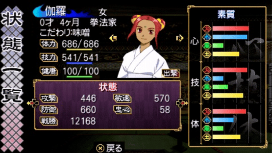 Ore no Shikabane wo Koete Yuke (roughly, "over my dead body,") is a dungeon crawler RPG where the player controls a clan of warriors, cursed to die young, over several generations as they try to defeat the demon that cursed them. Aside from combat, the player must also manage the clans resources, and ensure a new generation is ready to take over when the curse kills their parents. Set in ancient Japan, the game is heavily influenced by traditional Japanese art and mythology.
