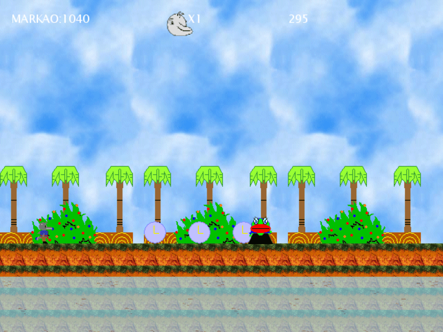 May Dolphin is in trouble, and Dontrel must save her. Travel across treacherous landscapes as you fight and dodge your way to victory. Use Cannon Caliber, the magical sword, to aid Dontrel during his quest.