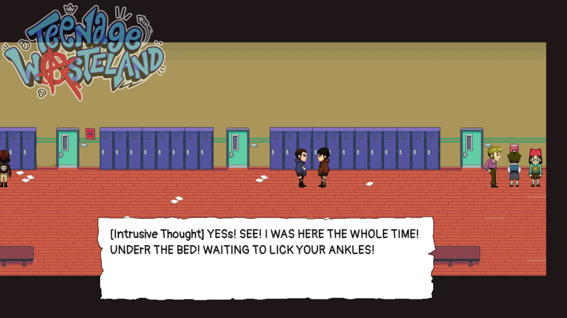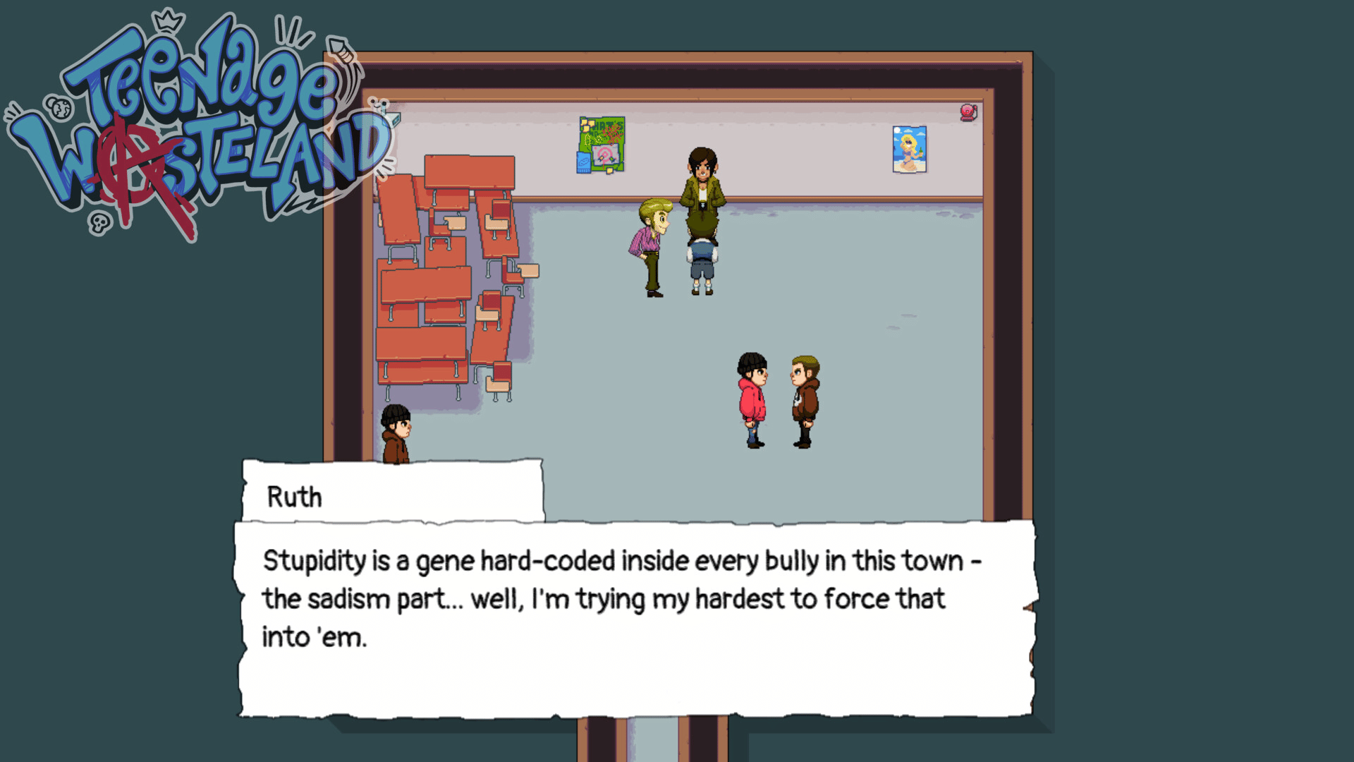 Teenage Wasteland is a hugely detailed, open world RPG set in the early 2000's! With over a hundred perks, dozens of cliques to help/harass, and hundreds of choices, you can be the teen YOU want to be...