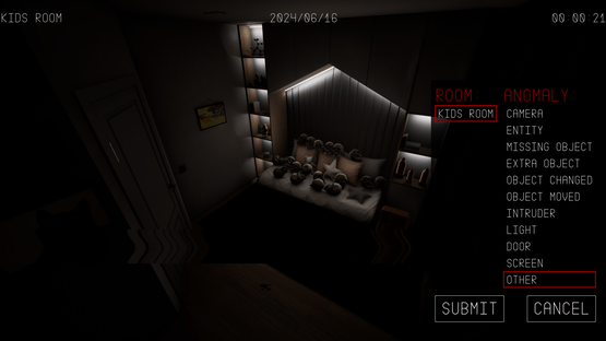 You are an Overseer on duty. Cycle through the camera feeds looking for anomalies. Upon finding one, report it quickly. Too many anomalies can lead to severe distortions in reality and result in deaths, including yours.
