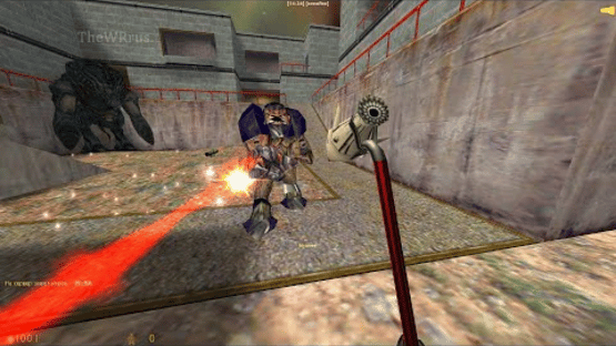 Some mods out there work to provide a realistic atmosphere or a sense of being a part of a military unit. Others seek to bring popular movies to Half-Life in order to replicate the feeling of the movie in a game. Still others evoke fear and revulsion with a dark, gloomy feel. And then you have mods that make you laugh your ass off. Rocket Crowbar is of the latter type, and one of the best out there right now. If you're looking for wacky fun, Rocket Crowbar delivers. In spades. Rocket Crowbar is basically a weapons modification mod, but the new HL 1.1-compatible version has a couple of extra tricks up its sleeve. First of all, the server can enable a CTF mode on any deathmatch level. All you have to do is make sure teamplay is on and that at least two teams are listed in the server options. Best of all, you can have up to six teams for some really chaotic fun. Secondly, the mod includes the option of a little pregame poll. The person hosting the server just has to edit the appropriate text files in the mod directory and activate the poll via a console command (see below). There is also a very basic bot included, if you're really short on people to kill. All right, you say. Enough with the extra stuff; let's see the weapons! All of the Rocket Crowbar weapons have different effects than the standard Half-Life ones. Most notable is the secondary fire on the crowbar, which fires a rocket (and thus, the name of the mod). Weapon balance is taken up a bit in Rocket Crowbar; many weapons are quite lethal. If you're the type who's used to shrugging off a few hits and only trying to dodge shots from big weapons, you're in for a rude awakening. Fortunately, the "drunken rocket" effect helps to offset the crowbar as a major weapon. I won't list all of the new effects here, as there is fun to be had in discovering what things do. The Glock has a secondary fire that will push you a little in the direction you're facing. This lets you boost yourself to higher places without the complete mobility provided by the usual grappling hooks, which is a nice balancer. Another example of a highly lethal but fairly balanced weapon is the "gravity well" hand grenade. The effect is quite spectacular, but it's easy to get hoist with your own petard when using them. The rocket launcher throws out a friendly NPC, which is actually a very powerful proximity mine. Other effects include the shotgun firing a flying scientist, snarks with eye lasers (and the ability to look through the snarks' eyes) and the tau cannon's teleport effect.