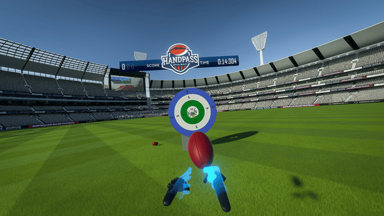 Put on your VR headset and see if you can beat the record! A handpass is a fundamental skill in the sport of Australian Rules Football - hold the ball in one hand and punch it with the other! Handpass VR will test the accuracy of your handpasses with moving targets - and in a variety of environments from a stadium to outer space!