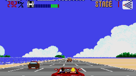 Mega Drive/Genesis Port of "OutRun". Barrel down the straightaway and bank your way into turns as you master the world's most challenging raceway. Race at top speed towards the finish line. Enjoy such realistic features as acceleration, lane changes, diversified terrain, sudden curves, and much more. Outrun is not just a test of who can drive the fastest, it's also a matter of who can plan the best race strategy and execute it flawlessly. Each race is different and demands a new strategy.