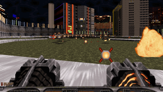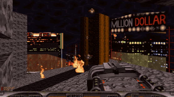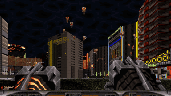 Neo L.A.: the distant future of 2024. Retired for eons since a series of legal disputes, Duke Nukem is off to a literal fresh start, festively spending Christmas eve alone, homeless and panhandling.