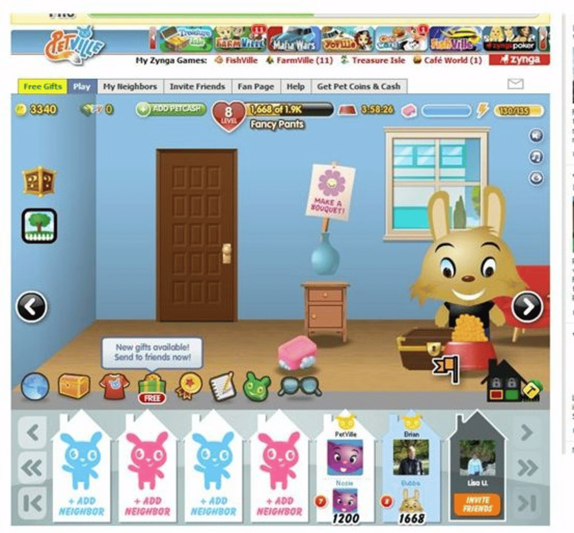PetVille is a game where you raise, dress, and care for a pet that you create. Visit your friends' houses and play with their pets to earn coins you can use to make your pet and house the coolest on the block!