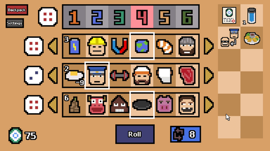 This is a casual deck-building game based on dice rolling. Players will rely on their choices and some luck to achieve victory.