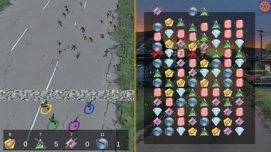 An intense blend of match-3 puzzle action and combat in Match Kill Survive. Your mission: survive relentless waves of zombies by matching tiles to generate ammunition for your squad. Each color you match powers up a specific squad member, allowing them to unleash devastating attacks on the undead.