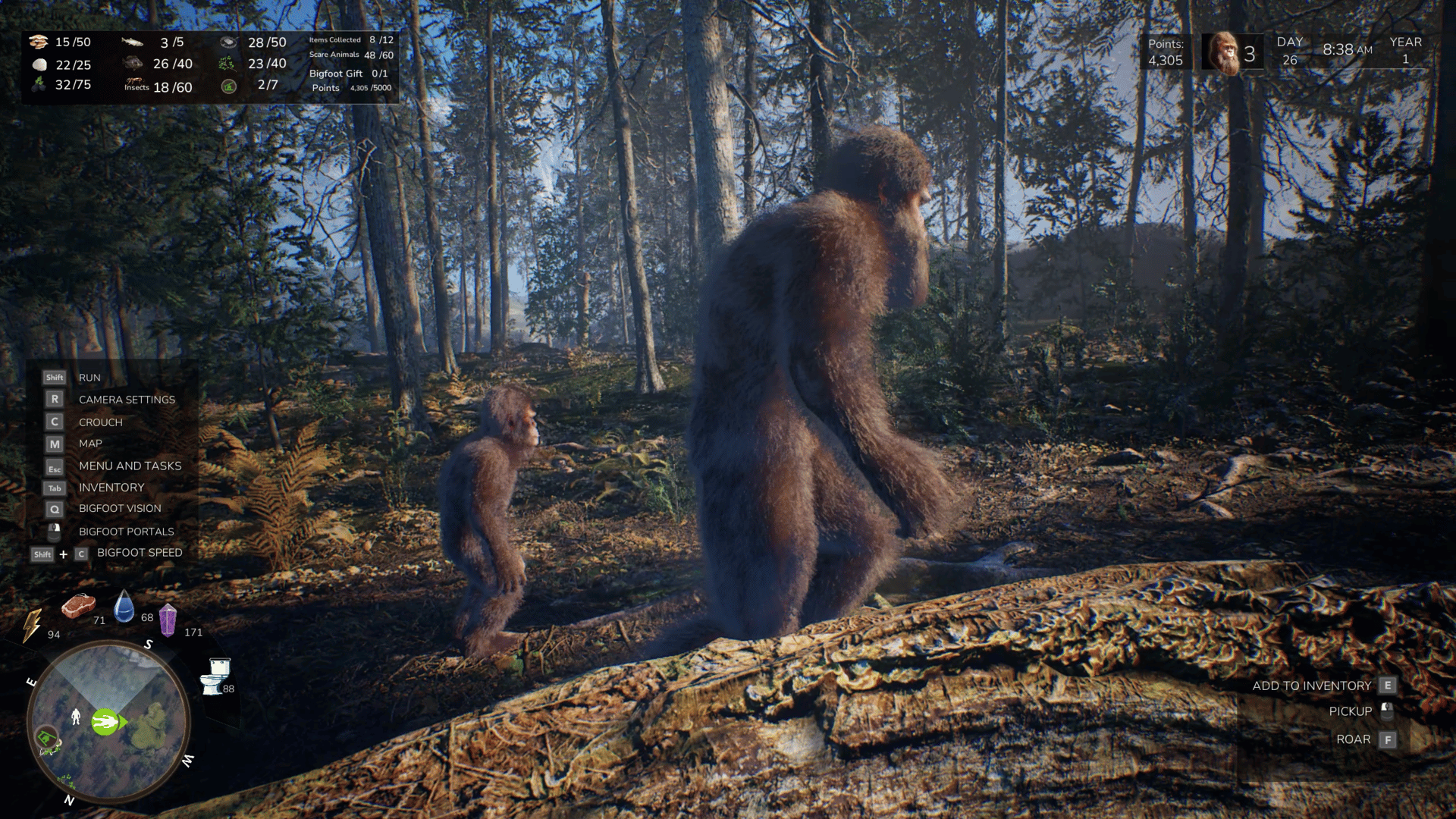 A simulator game where you live life as Bigfoot. Catch fish, forage for mushrooms and berries, build shelters, and more. Survive and live your best Bigfoot Life.