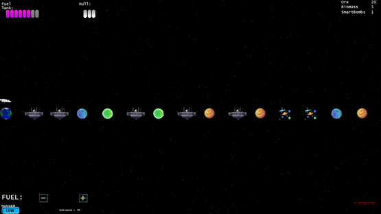 Escape from Earth! Navigate procedurally generated levels using your trusty Jetpack and Laser rifle, gather precious Ores to trade and Biomass to fuel your ship "Mole-1" on it's way to the final destination, Andromeda!