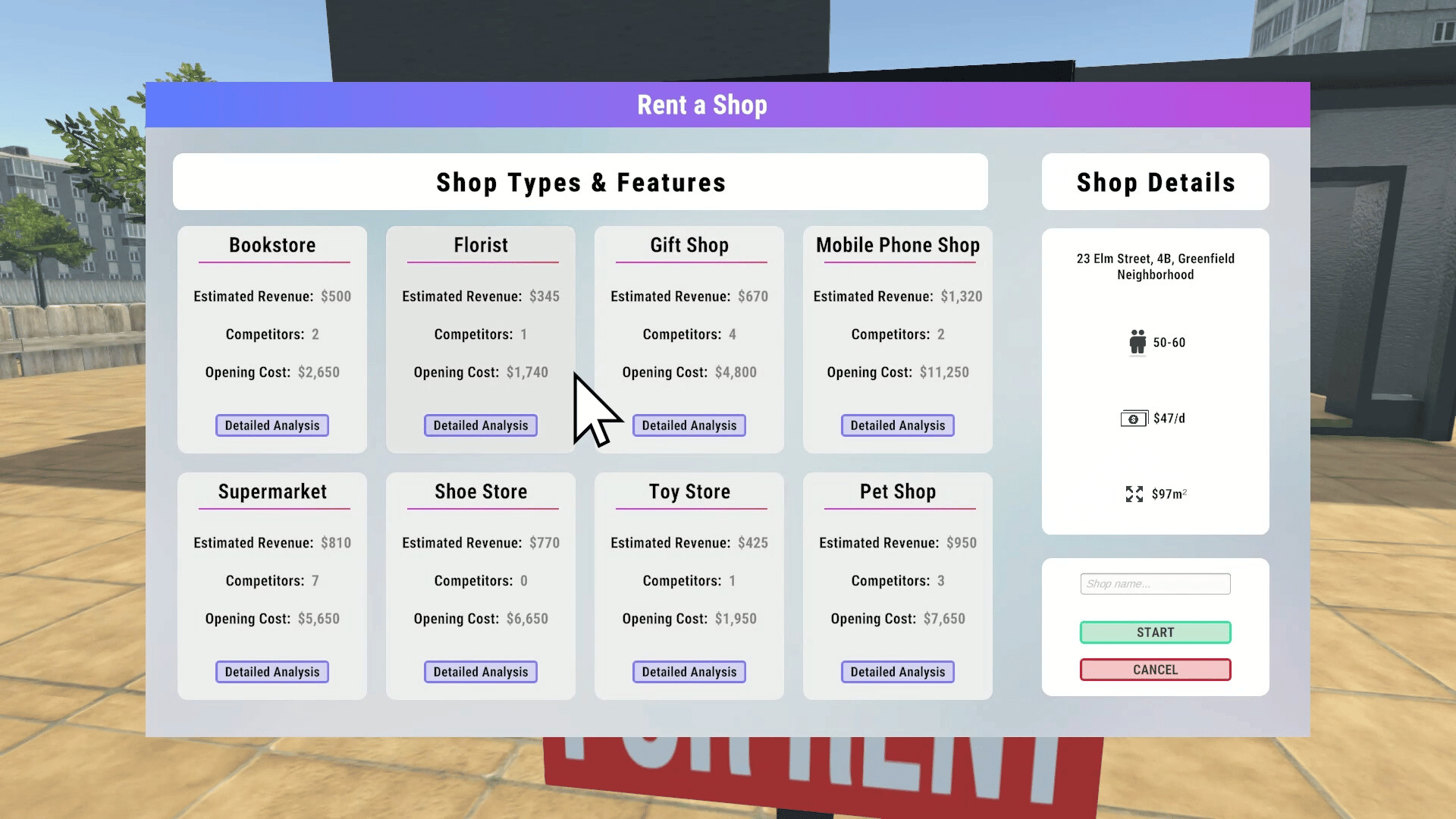In Business Simulator 2026, you start with a small capital and aim to build a business empire in the city by deciding which business to start in which shop and deciding the prices. Business Simulator 2026 is a business simulation that will test your business acumen and strategic planning skills.