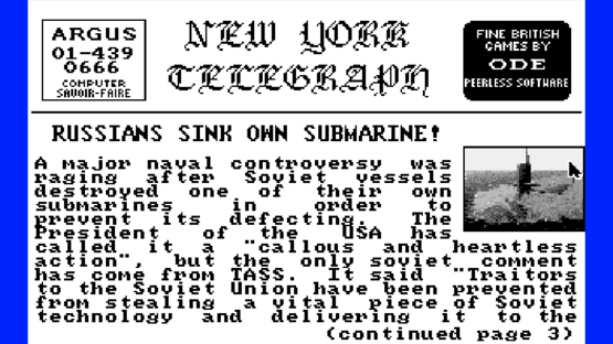 In this adaptation of Tom Clancy's popular novel, you play the part of Captain Marko Ramius attempting to defect to the US. Once into the Atlantic, you must rendezvous with the US Navy and fake the destruction of the Red October. Your crew is not aware of the defection -- but the Soviet Navy is, and will try to stop you at any cost.