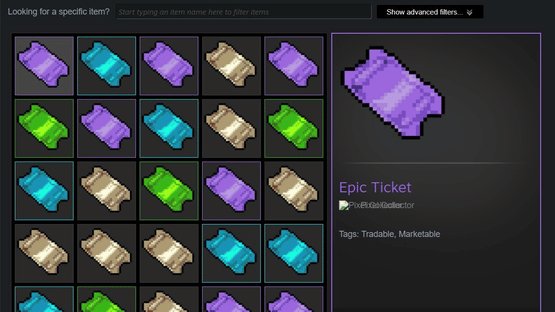Collect Pixelart items! Get 1-4 tickets every 2 hours to spin the lucky wheel. Win pixelart items or higher rarity tickets! All items appear in your Steam inventory and are tradable/marketable, making it easier to complete your collections.