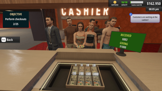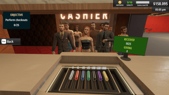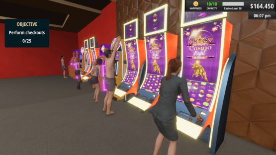 Run your own casino. Buy new gambling games, take payments, hire employees, expand and design your casino. Slots, blackjack, roulette, poker, baccarat, craps and more...