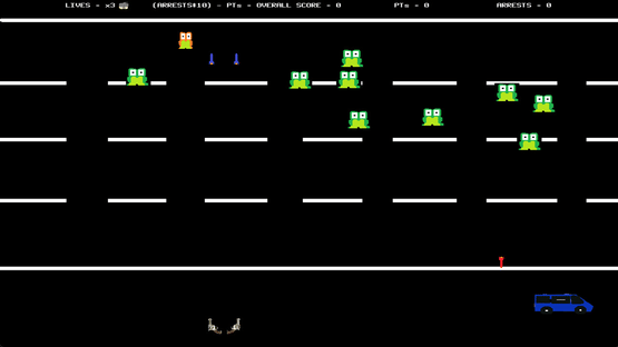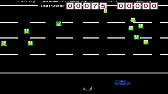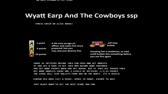 Arcade, Arcade! Arcade!! back to the Eighties and the wild west. Stop the Lawmen getting past by shooting them, if they get past they will make arrests. you get three lives to get the highest score you can.