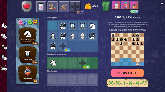 All the strategic depth of chess with all the fun of roguelikes! Upgrade your army with boosts, relics, and consumables to take on formidable bosses - without all the tools at your disposal, you won't stand a chance!