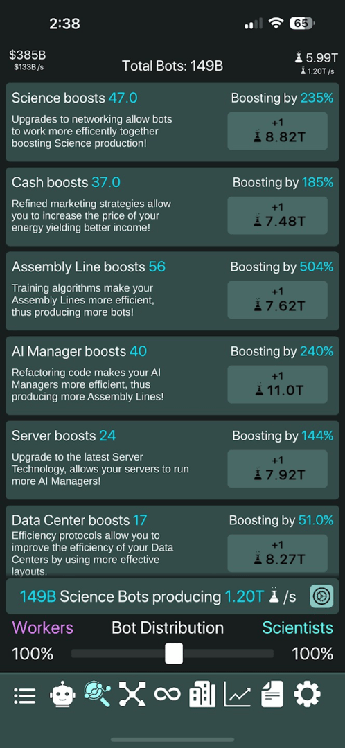 Manage a solar empire, produce bots which will make solar panels for you. Send your panels to the sun to generate energy and sell that energy to make money which you can spend on even more bots!