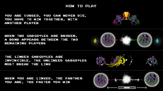 Stonebond: The Gargoyle's Domain is a multiplayer gothic combat game. Fueled by our love for pixelated classics and 90s TV series, it is a 4-player couch game in which you form a fragile bond with another player, and win by protecting it together. The core mechanics, simple and intuitive, allows for intense and fast brawls where every mistake makes your pixelated gargoyle explode. Every night, an old cursed church infuses life into its gargoyles and has them fight endlessly. Enter the Domain…