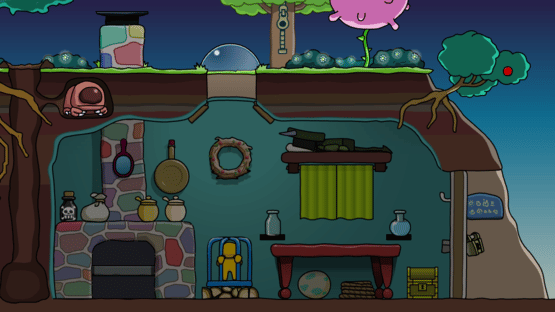 The purpose of Chronon is to let the little yellow dwarf out of a center cage. The master of this house will come back at 7pm; you make the way to escape with moving and interacting with items in the house at each fixed hour until the master comes back.