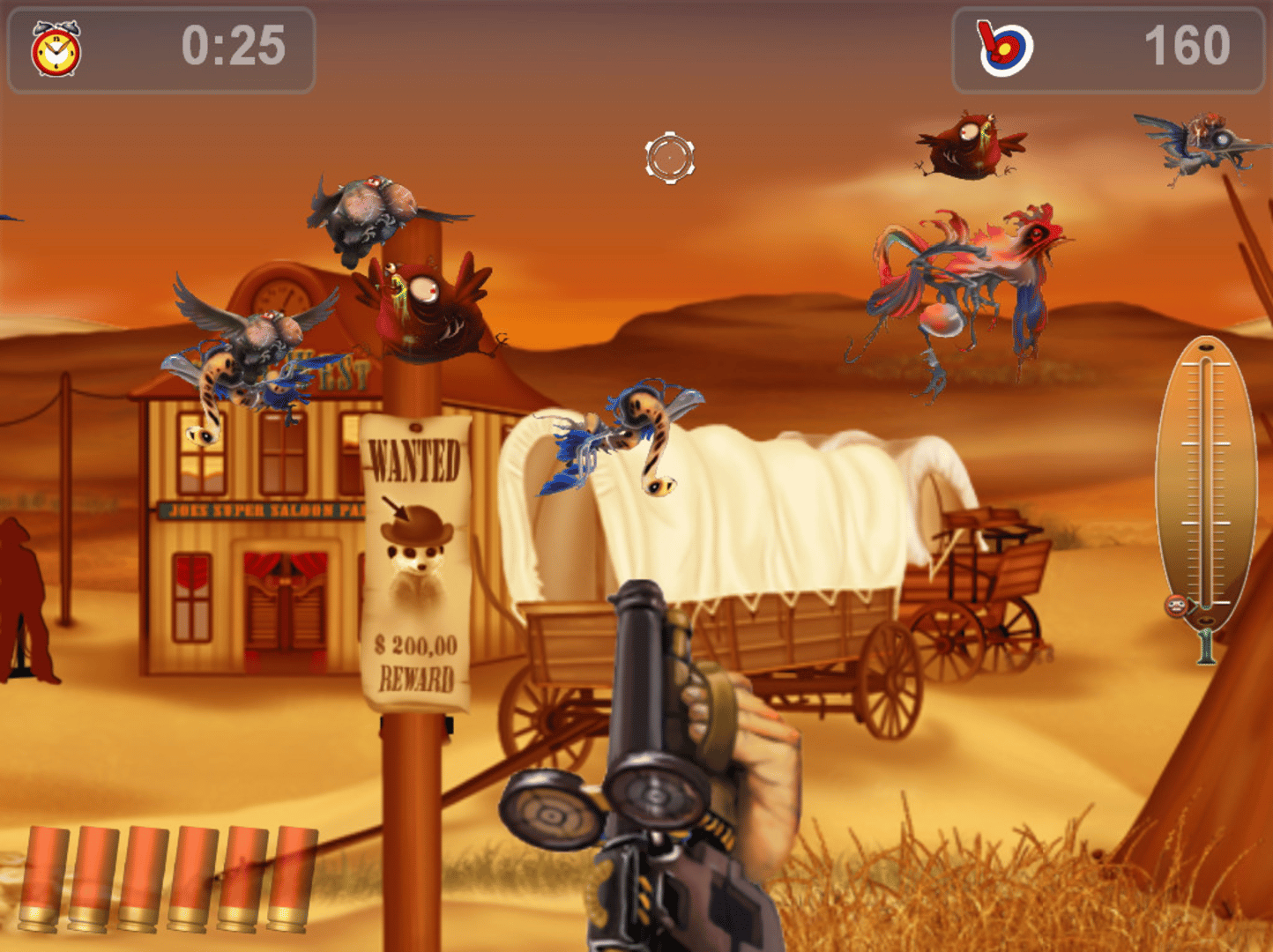 A vengeful roasted chicken has aroused all peaceless flying undead birds to take revenge on humanity. Free your old gun from dust and shoot down as many of those ungodly creatures as possible! Get yourself on the high-score table by improving your skills shot by shot. Explore the levels and solve all hidden puzzles to improve your score even further!